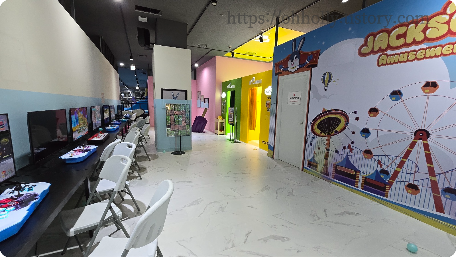 화장실가는 쪽과 아이들 트램폴린존 근처로