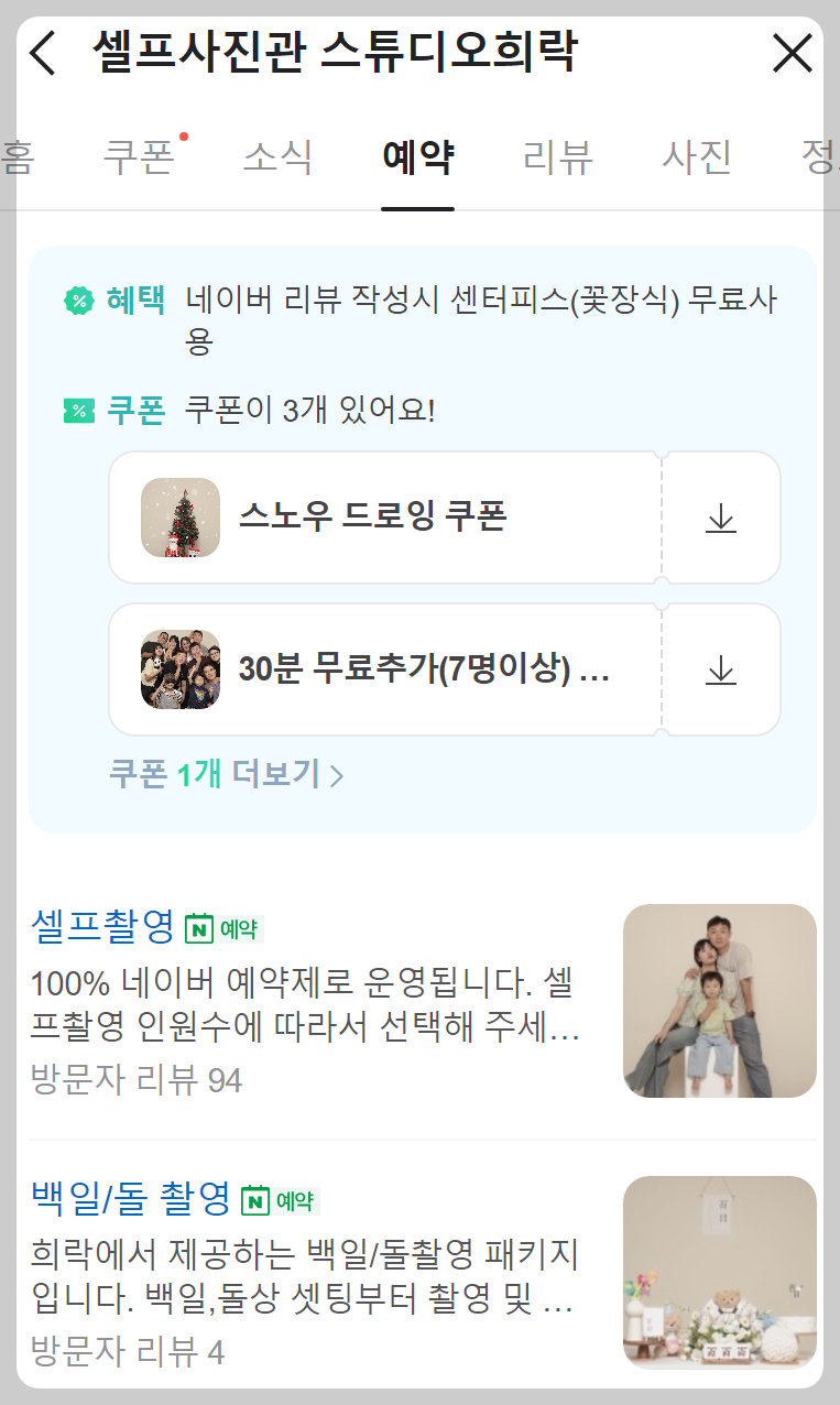 네이버 예약페이지에 가면 쿠폰발급도 가능하다