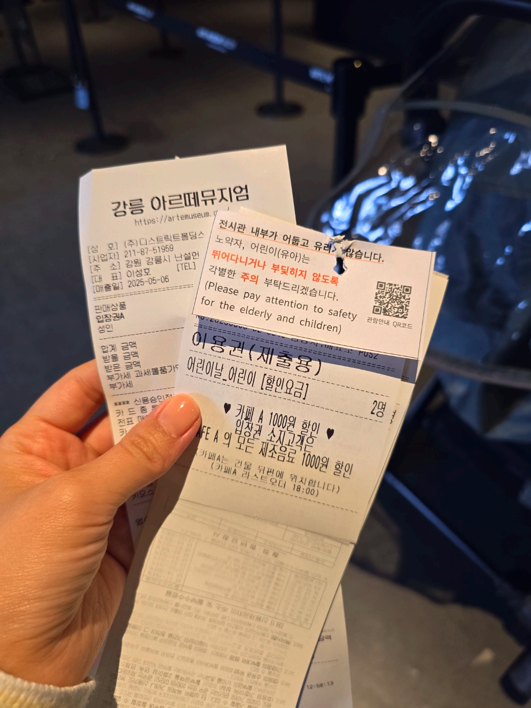 입장안내시에도 친절하게 티켓이랑 같이 안내문구를 주시긴해요