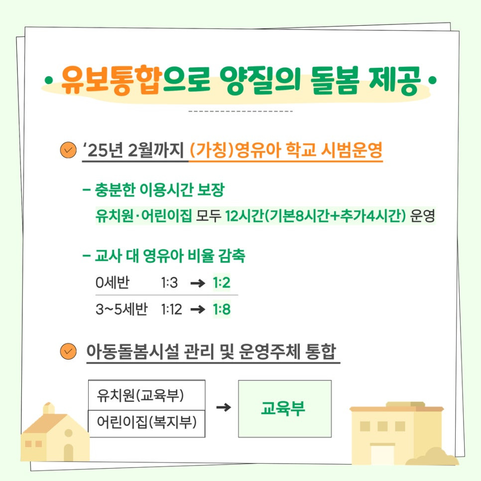 2025년부터 유보통합으로 영유아 교육, 돌봄 지원이 확대되고